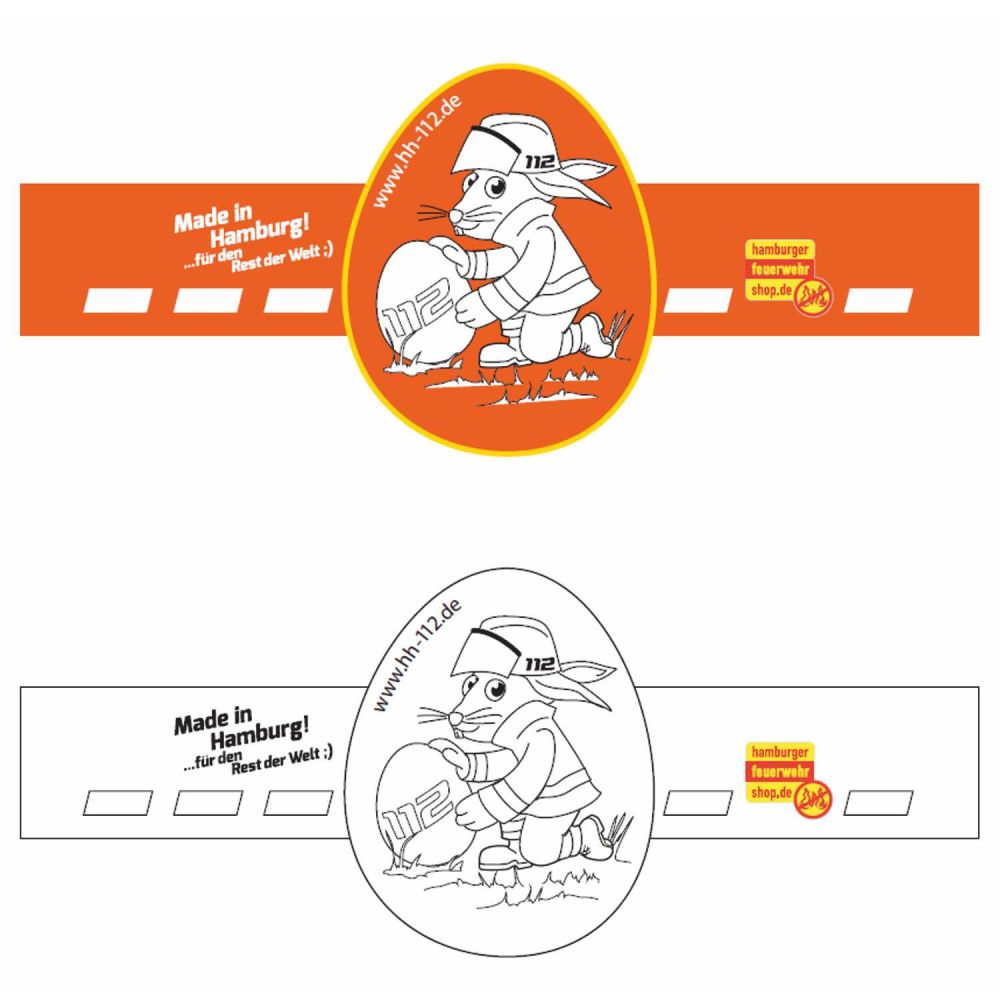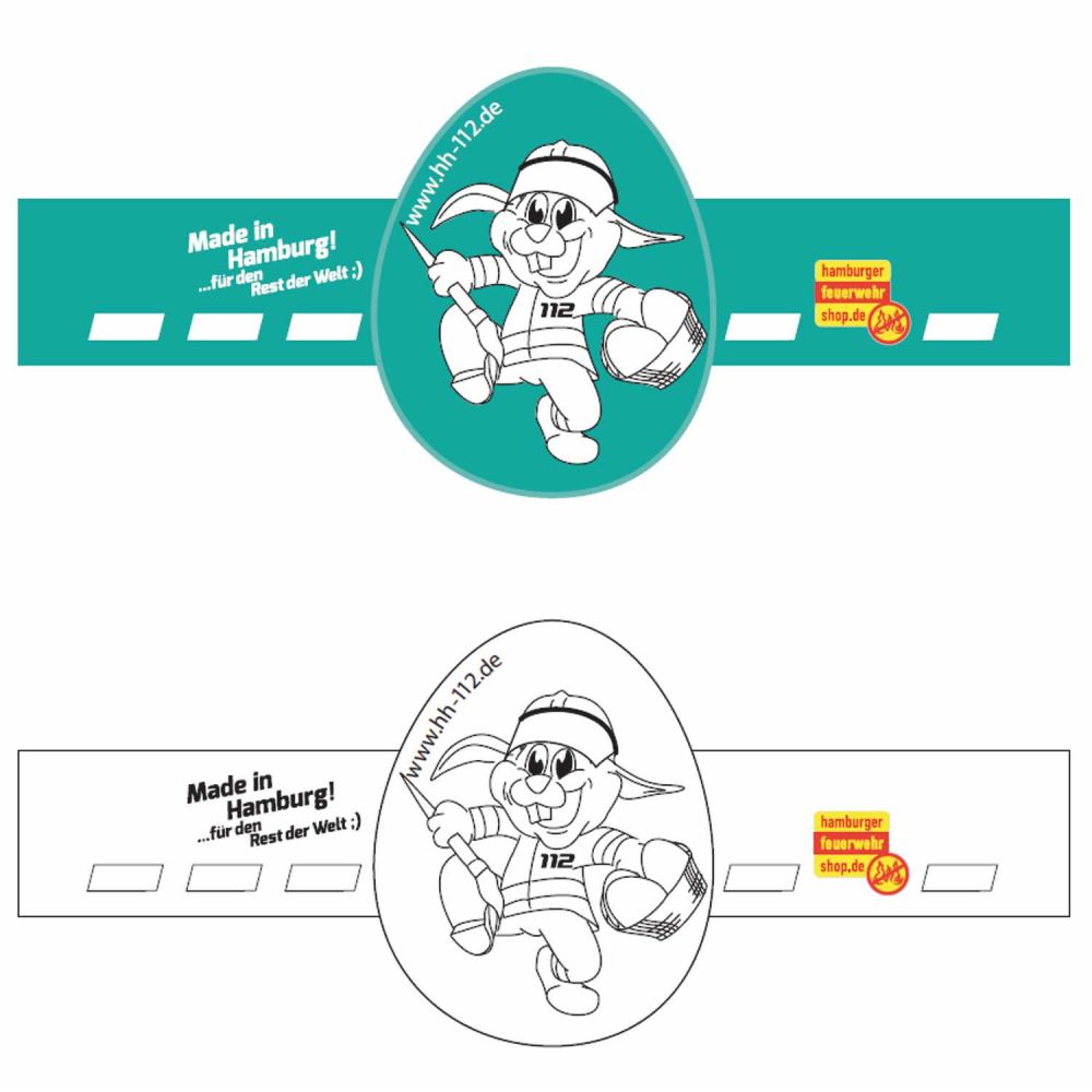 Unsere Feuerwehr Hasenbande sorgt als Eierbecherbanderole für kreativen Malspaß rund um Ostern. Die lustigen Ausmalbilder zeigen fröhliche Hasen mit Feuerwehrhelm und Kleidung. Perfekt für einen bunten Ostertisch und jede Menge Spaß beim Ausmalen.